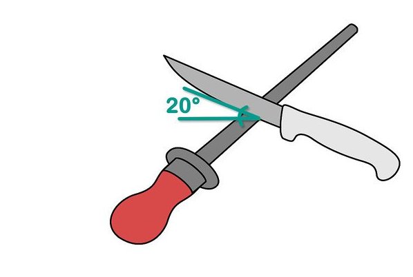 3. ถือมีดทำมุมประมาณ 20องศา เมื่อเทียบกับเหล็กลับมีด